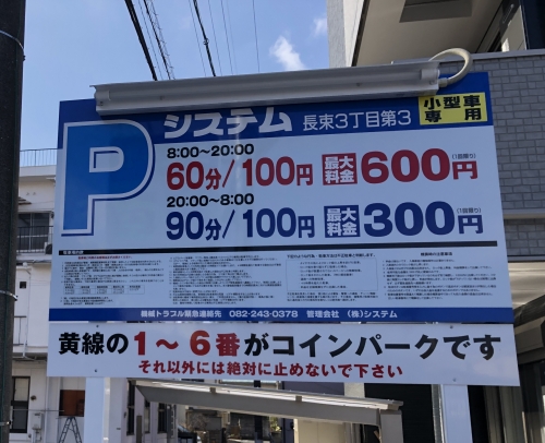 広島市安佐南区長束3丁目にあるコインパーキングをご紹介【システム広島】