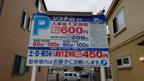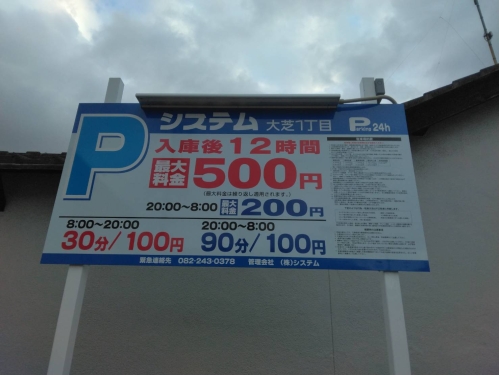 8:00~20:00 30分/100円 20:00~8:00 90分/100円