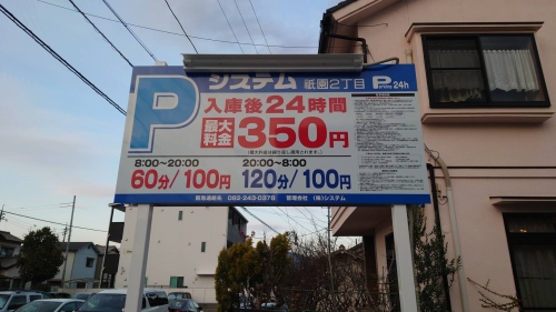 8:00~20:00 30分/100円 20:00~8:00 60分/100円