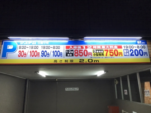 【20:00~8:00】120分/100円・最大料金200円